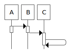 A->B: activate A activate B B->C: deactivate A deactivate B activate C C->C: deactivate C