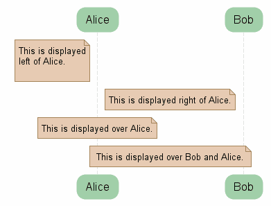 You can add notes to your diagram. Notes can be placed to the left of a participant or to the right of a participant. In addition, you can centre a note over one or more participants.