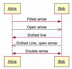 The participants are automatically created when they are used. Use the "-->" syntax to draw a dotted line.